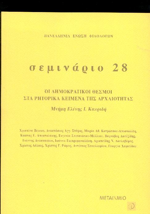 ΘΕΣΜΟΙ ΣΤΑ ΡΗΤΟΡΙΚΑ ΚΕΙΜΕΝΑ ΤΗΣ ΑΡΧΑΙΟΤΗΤΑΣ (ΜΝΗΜΗ Ε. Ι. ΚΑΚΡΙΔΗ) |